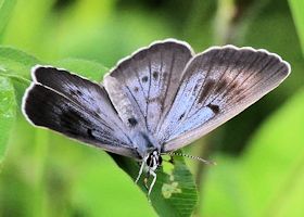 最近になって本州集部亜種に属するゴマシジミチョウが、弊社から5km北の中山間地の草地で生息が確認され、地